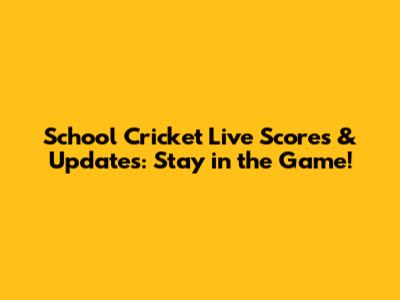 School Cricket Live Scores & Updates: Stay In The Game!
