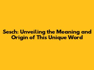 Sesch: Unveiling The Meaning And Origin Of This Unique Word