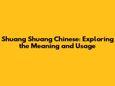 Shuang Shuang: A Deep Dive Into This Popular Chinese Term