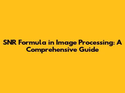 SNR Formula: Image Processing Explained