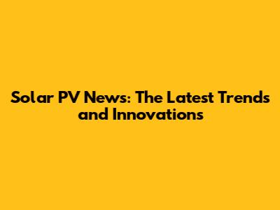 Solar PV News: The Latest Trends And Innovations