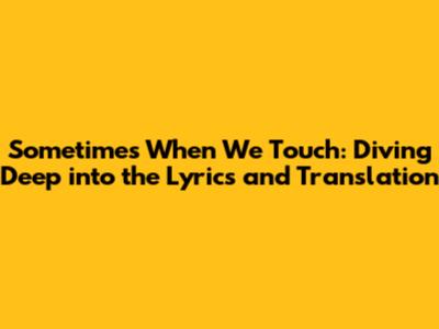 Sometimes When We Touch: Lyrics & Translation Explained