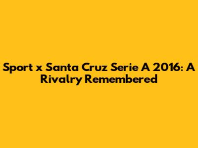 Sport X Santa Cruz Serie A 2016: A Rivalry Remembered
