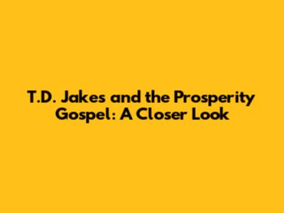 T.D. Jakes And The Prosperity Gospel: A Closer Look