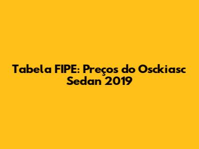 Tabela FIPE: Preços Do Osckiasc Sedan 2019