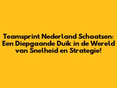 Teamsprint Nederland Schaatsen: Alles Wat Je Moet Weten!