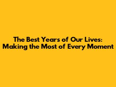 The Best Years Of Our Lives: Making The Most Of Every Moment