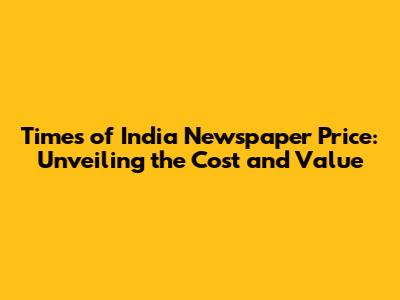Understanding the Times of India Newspaper Price: The Basics