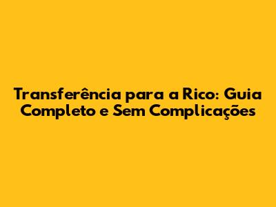 Transferência Para A Rico: Guia Completo E Sem Complicações