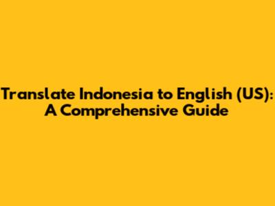 Translate Indonesia To English (US): A Comprehensive Guide
