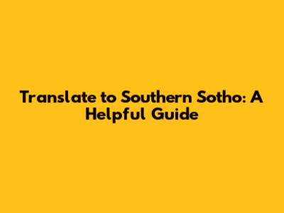 Translate To Southern Sotho: A Helpful Guide