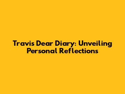 Travis Dear Diary: Unveiling Personal Reflections