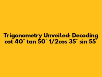 Hey math enthusiasts! Today, we're diving headfirst into the fascinating world of trigonometry, tackling the expression: cot 40° tan 50° 1/2cos 35° sin 55°. Don't worry if it looks a bit intimidating at first – we'll break it down step by step, making sure everyone understands what's going on. Trigonometry is super important in fields like engineering, physics, and even computer graphics, so understanding its basics is a win-win. We'll explore the relationships between angles and sides in triangles, and how to use those relationships to solve problems. Let's get started!