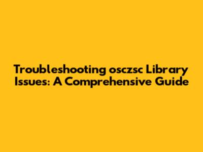 Troubleshooting Osczsc Library Issues: A Comprehensive Guide