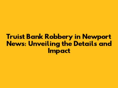 Hey everyone, let's dive into the story of the Truist Bank robbery in Newport News. We're going to explore the nitty-gritty details, the impact it had on the community, and what we can learn from such events. This article aims to provide a comprehensive overview, breaking down the incident into digestible chunks so you can stay informed and understand the bigger picture. I'll be using plain language and avoiding overly complex jargon, so even if you're not a news junkie, you'll be able to follow along. So, grab your coffee, sit back, and let's get started!