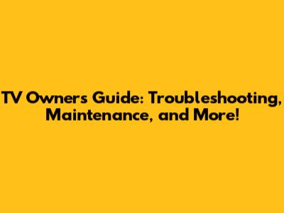 TV Owner's Guide: Troubleshooting, Maintenance, And More!