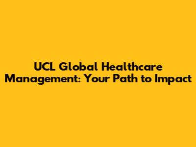 UCL Global Healthcare Management: Your Path To Impact