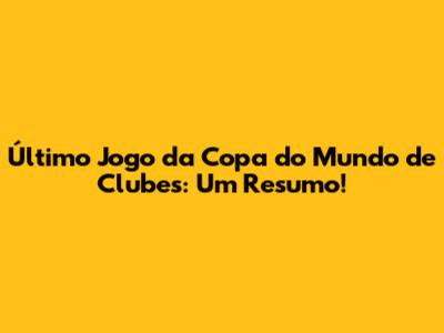 Último Jogo Da Copa Do Mundo De Clubes: Um Resumo!