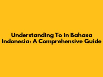 Understanding To In Bahasa Indonesia: A Comprehensive Guide