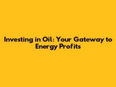 Investing in Oil: Your Gateway to Energy Profits