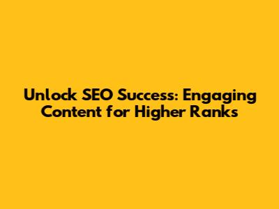 Unlock SEO Success: Engaging Content For Higher Ranks