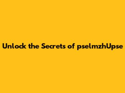 Unlock The Secrets Of PselmzhUpse