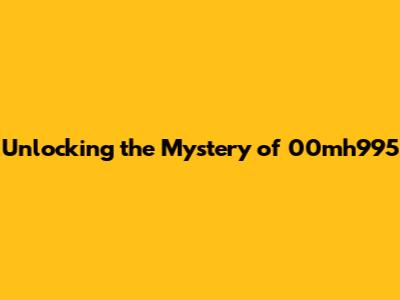 Unlocking The Mystery Of 00mh995