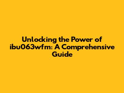 Unlocking The Power Of Ibu063wfm: A Comprehensive Guide