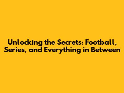 Unlocking The Secrets: Football, Series, And Everything In Between