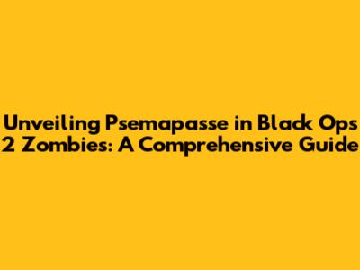 Unlocking The Secrets Of Psemapasse In Black Ops 2 Zombies