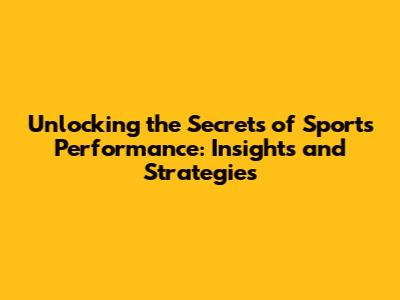 Unlocking The Secrets Of Sports Performance: Insights And Strategies