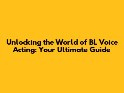 Unlocking The World Of BL Voice Acting: Your Ultimate Guide