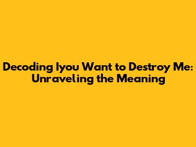 Unpacking 'Iyou Want To Destroy Me': Meaning And Nuance