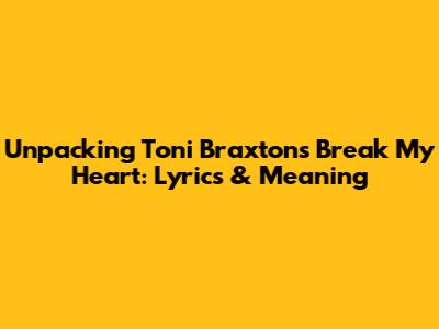 Unpacking Toni Braxton's 'Break My Heart': Lyrics & Meaning