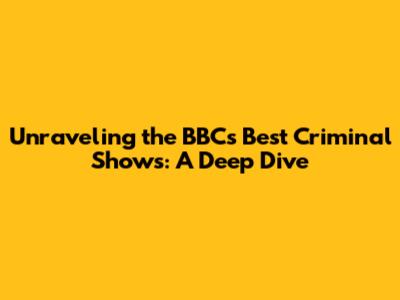 Unraveling The BBC's Best Criminal Shows: A Deep Dive