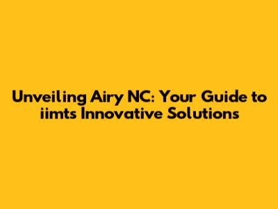 Unveiling Airy NC: Your Guide To Iimt's Innovative Solutions
