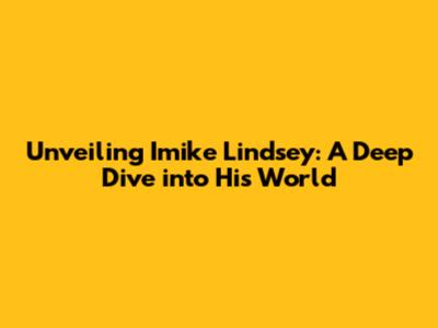 Hey guys! Ever heard the name Imike Lindsey? If not, you're in for a treat! This article is all about diving deep into the life and times of this fascinating individual. We'll explore who he is, what he's all about, and the incredible things he's accomplished. Get ready to be amazed, because Imike Lindsey's story is one for the books! Let's get started, shall we?