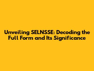 The Full Form of SELNSSE: Understanding the Basics