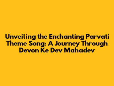 Unveiling The Enchanting Parvati Theme Song: A Journey Through 'Devon Ke Dev Mahadev'