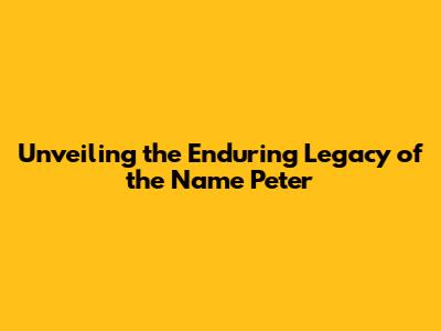 Unveiling The Enduring Legacy Of The Name Peter