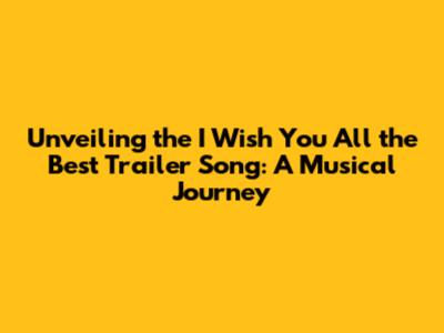 Unveiling The 'I Wish You All The Best' Trailer Song: A Musical Journey