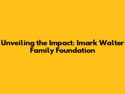 Unveiling The Impact: Imark Walter Family Foundation