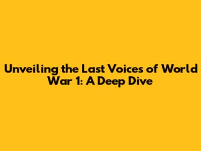 Unveiling The Last Voices Of World War 1: A Deep Dive