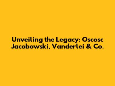 Unveiling The Legacy: Oscosc Jacobowski, Vanderlei & Co.