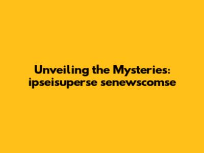 Unveiling The Mysteries: Ipseisuperse Senewscomse