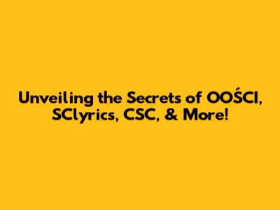 Unveiling The Secrets Of OOŚCI, SClyrics, CSC, & More!