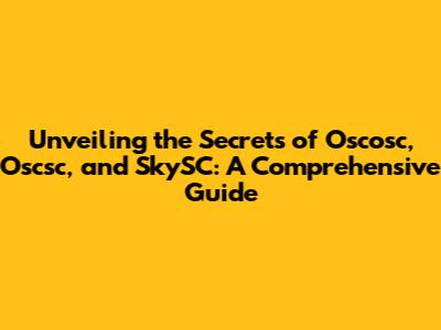 Unveiling The Secrets Of Oscosc, Oscsc, And SkySC: A Comprehensive Guide