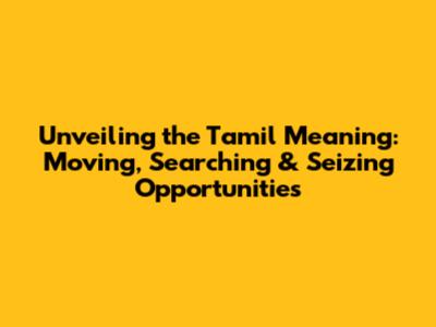 Unveiling The Tamil Meaning: Moving, Searching & Seizing Opportunities