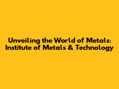 Unveiling The World Of Metals: Institute Of Metals & Technology