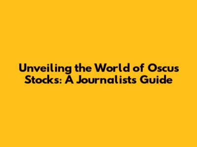 Unveiling The World Of Oscus Stocks: A Journalist's Guide